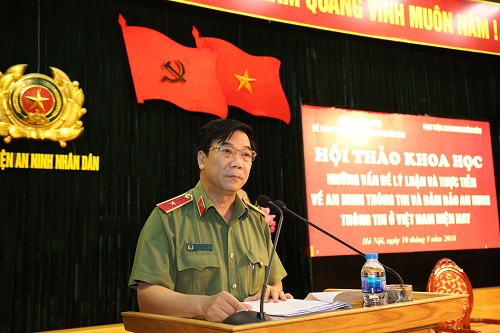 Ngày 10/5/2018, Học viện An ninh nhân dân đã tổ chức Hội thảo khoa học với chủ đề “Những vấn đề lý luận và thực tiễn về an ninh thông tin và đảm bảo an ninh thông tin ở Việt Nam hiện nay”. Đại tá, PGS.TS Lê Văn Thắng - Giám đốc Học viện ANND chủ trì Hội thảo.