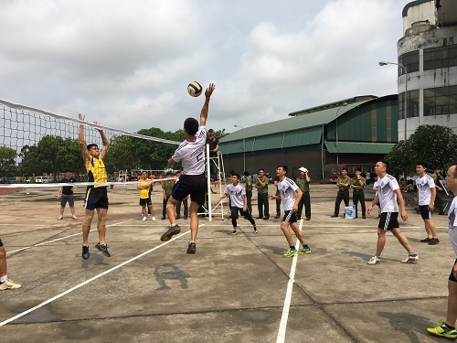 Đội bóng chuyền nam - Công đoàn Học viện thi đấu với đội PCCC