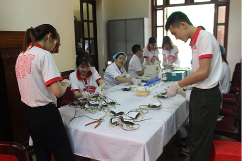 Và tham gia cùng các y bác sỹ việc tiếp nhận các đơn vị máu