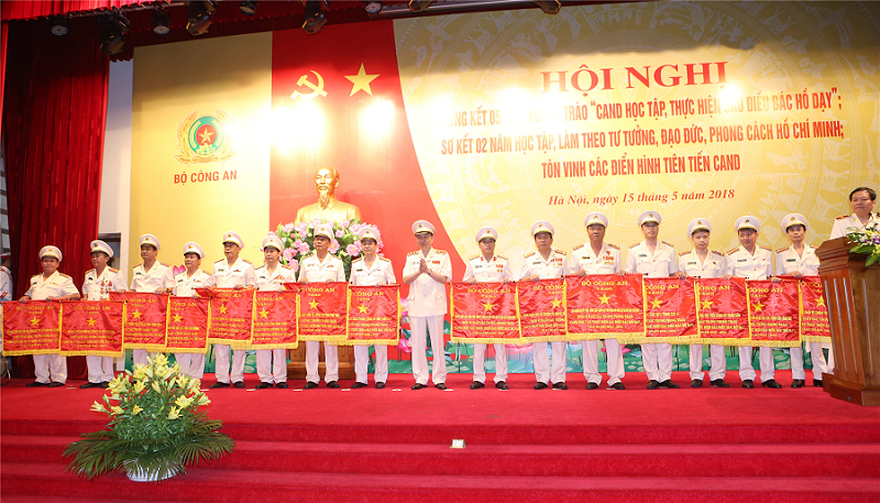Bộ trưởng Tô Lâm trao Cờ thi đua của Bộ Công an tặng 15 tập thể có thành tích xuất sắc trong phong trào “CAND học tập, thực hiện Sáu điều Bác Hồ dạy” giai đoạn 2013 - 2018.