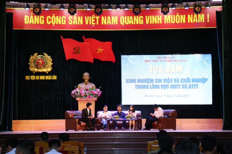 Thực hiện chương trình công tác năm học 2017 - 2018 và Kế hoạch số 2313/KH-T31-ANTT ngày 4/5/2018 của Giám đốc Học viện, ngày 17/5/2018, Học viện An ninh nhân dân phối hợp với các đơn vị, doanh nghiệp triển khai tổ chức tọa đàm hướng nghiệp năm 2018 với chủ đề “Khởi nghiệp và kinh nghiệm xin việc làm trong lĩnh vực Công nghệ thông tin và An toàn thông tin”.