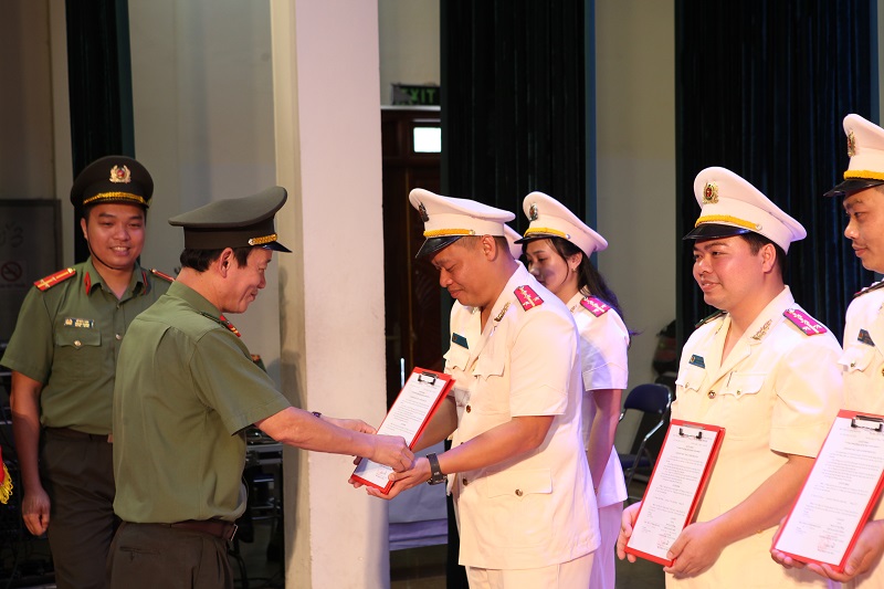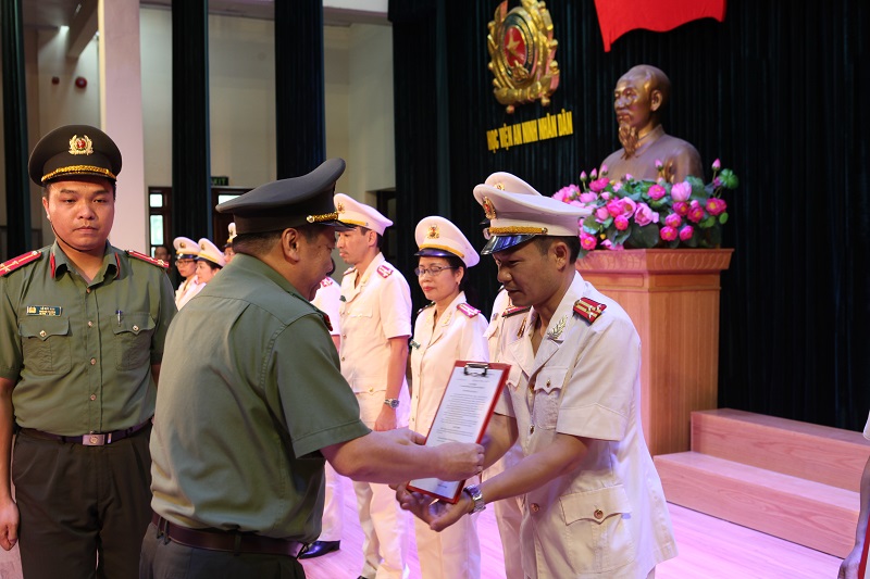 Thiếu tướng, PGS.TS Nguyễn Hồng Hải - Phó Giám đốc Học viện trao Quyết định cho các đồng chí được thăng cấp bậc hàm Thiếu tá năm 2018.