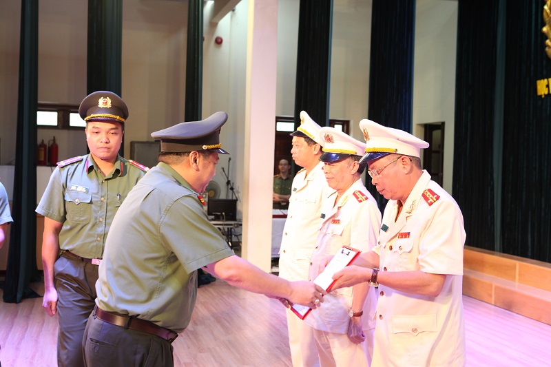 Thiếu tướng,GS.TS Lê Minh Hùng - Phó Bí Thư Đảng ủy, Phó Giám đốc Học viện trao Quyết định cho các đồng chí được thăng cấp bậc hàm Trung tá năm 2018.