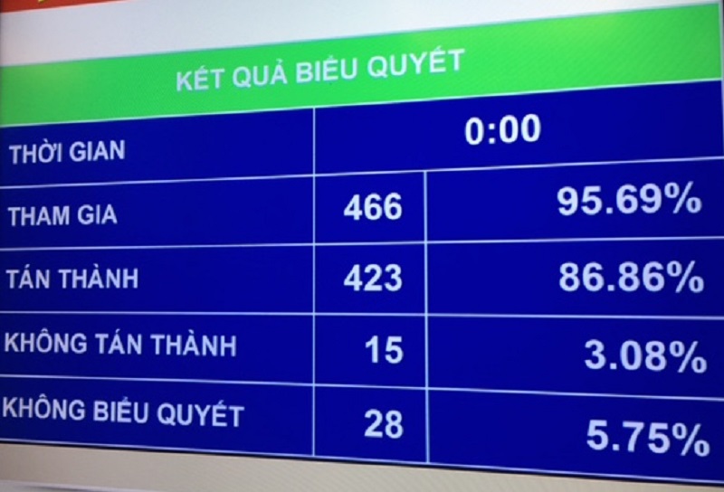 Với 423/466 đại biểu Quốc hội (ĐBQH) tán thành, chiếm 86,86%, Quốc hội đã thông qua Luật An ninh mạng sáng ngày, 12-6-2018.