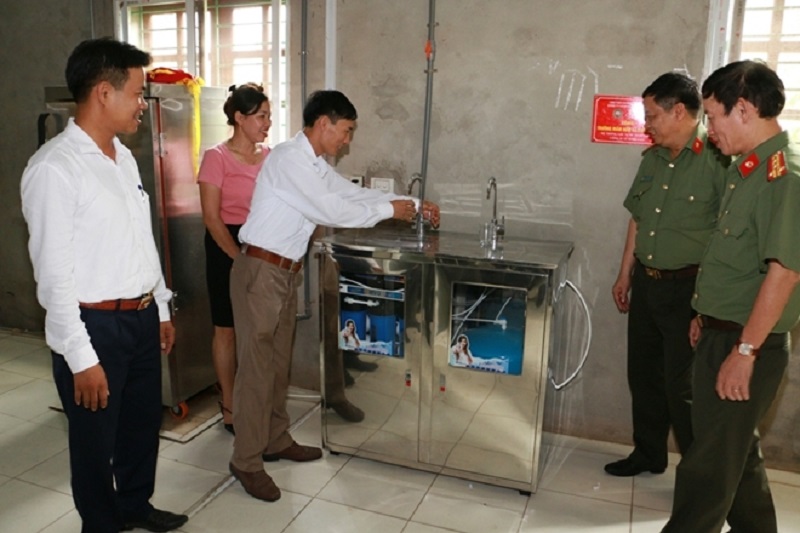 Đoàn công tác học viện ANND cùng Công ty cổ phần MVG Việt Nam tặng hệ thống máy lọc nước tinh khiết cho trường Mầm non xã Khải Xuân.