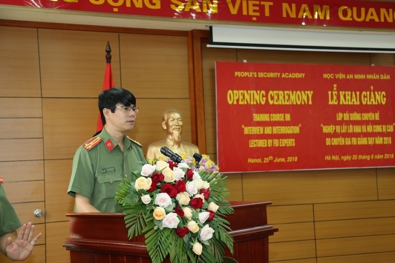 Phát biểu tại buổi Lễ, Thiếu tướng GS.TS Lê Minh Hùng khẳng định: “Để lấy lời khai và hỏi cung bị can đạt hiệu quả, đòi hỏi điều tra viên phải có nhiều kinh nghiệm trong việc thiết lập giao tiếp tâm lý và nắm vững các chiến thuật lấy lời khai, hỏi cung bị can. Tuy nhiên, trên thực tế vẫn còn một số ĐTV chưa thực sự chú trọng việc thiết lập giao tiếp tâm lý cũng như tìm hiểu các chiến thuật lấy lời khai, hỏi cung bị can mới”. Điều này đặt ra yêu cầu cần phải nâng cao nhận thức, trình độ đội ngũ Điều tra viên. Bên cạnh đó, đồng chí Phó Giám đốc Học viện cũng đánh giá cao những kinh nghiệm điều tra những vụ án phức tạp trong hơn 100 năm lịch sử của Cục điều tra Liên bang Mỹ.