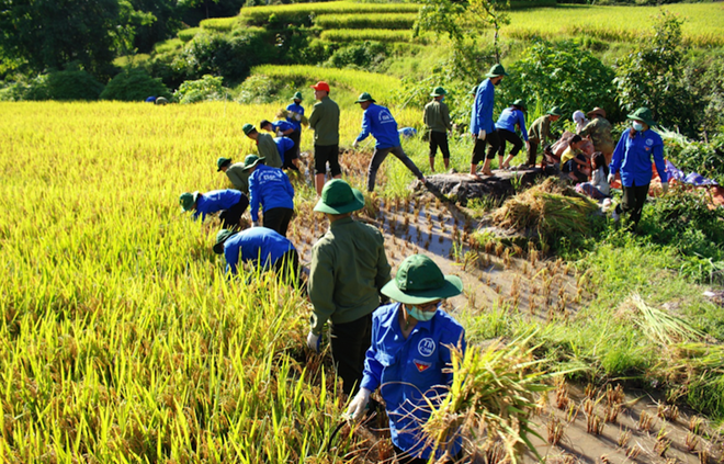 Đội sinh viên giúp bà con thu hoạch vụ mùa