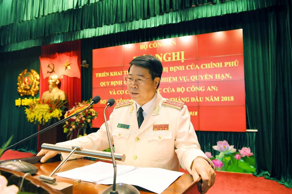 Phát biểu khai mạc Hội nghị, Bộ trưởng Tô Lâm nhấn mạnh, Hội nghị triển khai thực hiện Nghị định của Chính phủ quy định chức năng, nhiệm vụ, quyền hạn, cơ cấu tổ chức của Bộ Công an và sơ kết công tác công an 6 tháng đầu năm 2018 diễn ra trong bối cảnh toàn Đảng, toàn dân, toàn quân ta đang nỗ lực phấn đấu thực hiện thắng lợi Nghị quyết Đại hội lần thứ XII của Đảng, các chủ trương, Chỉ thị, Nghị quyết của Ban Chấp hành Trung ương Đảng, Ban Bí thư, Quốc hội, Chính phủ trên các lĩnh vực kinh tế, văn hóa, xã hội, quốc phòng, an ninh, đối ngoại. Trọng tâm, là thực hiện các Nghị quyết của Hội nghị lần thứ 6, thứ 7 Ban Chấp hành Trung ương khóa XII về một số vấn đề về tiếp tục đổi mới, sắp xếp tổ chức bộ máy của hệ thống chính trị tinh gọn, hoạt động hiệu lực, hiệu quả; về tập trung xây dựng đội ngũ cán bộ các cấp, nhất là cấp chiến lược đủ phẩm chất, năng lực và uy tín, ngang tầm nhiệm vụ...
