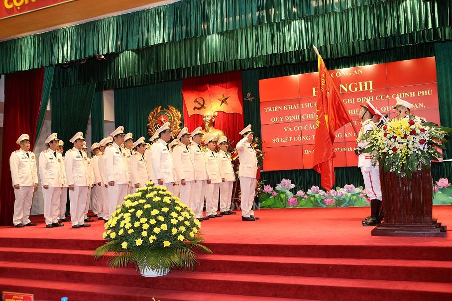 Lễ tuyên thệ dưới Cờ Tổ quốc về nhận nhiệm vụ mới theo Nghị định số 01/2018/NĐ-CP ngày 06/8/2018 của Chính phủ quy định về chức năng, nhiệm vụ, quyền hạn và cơ cấu tổ chức Bộ Công an.