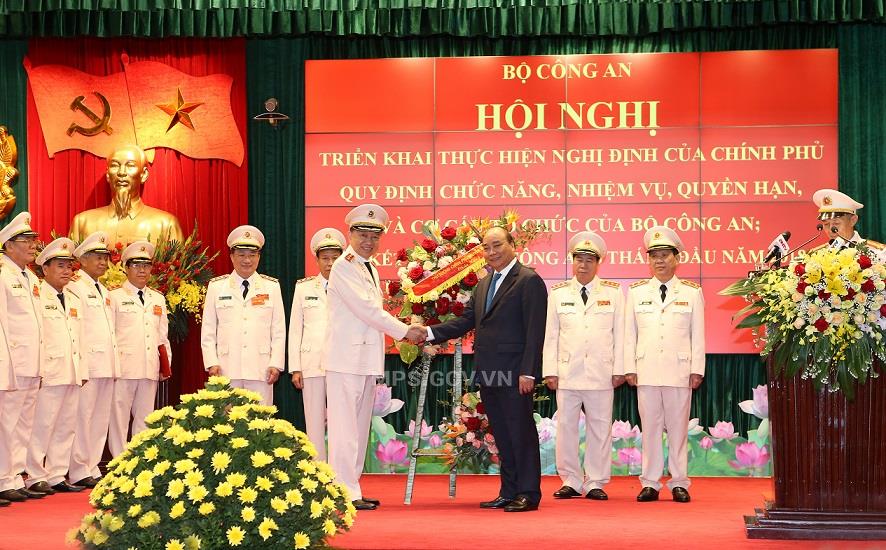 Thủ tướng Chính phủ Nguyễn Xuân Phúc tặng hoa chúc mừng Bộ Công an.