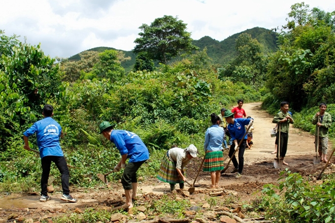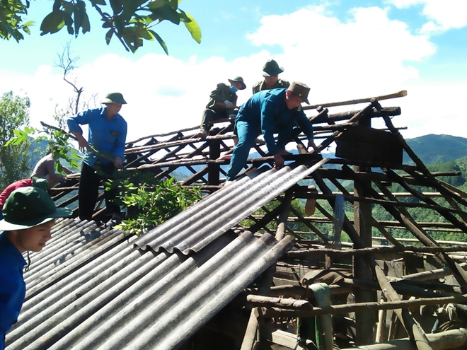 Sinh viên Học viện An ninh cùng với chính quyền địa phương sửa nhà cho những gia đình có hoàn cảnh khó khăn trên địa bàn huyện Trạm Tấu, tỉnh Yên Bái