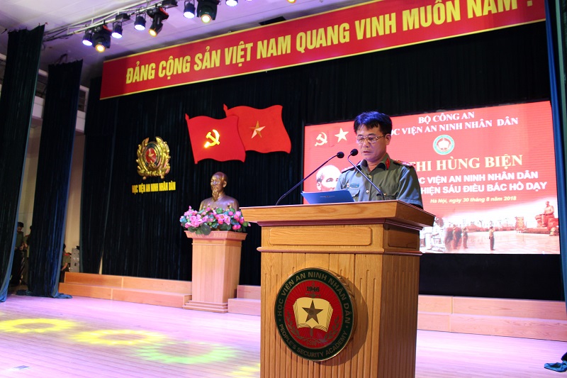 Thực hiện Chương trình công tác năm học và Kế hoạch số 4518/KH-T31-QLHV ngày 11/06/2018 của Giám đốc Học viện, tối ngày 30/8/2018, Học viện An ninh nhân dân đã tổ chức Hội thi hùng biện với chủ đề “Học viên Học viện ANND học tập, thực hiện Sáu điều Bác Hồ dạy”.
