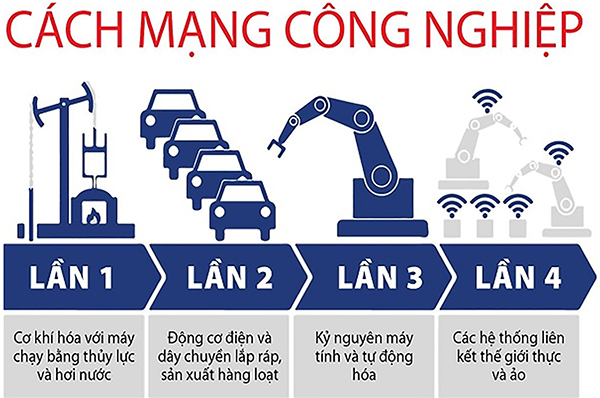 Hình minh hoạ sự thay đổi trong sản xuất qua các cuộc cách mạng công nghiệp