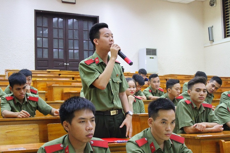 Thượng tá, TS Nguyễn Thị Bích Mơ giải đáp thắc mắc cho học viên tại buổi Tọa đàm