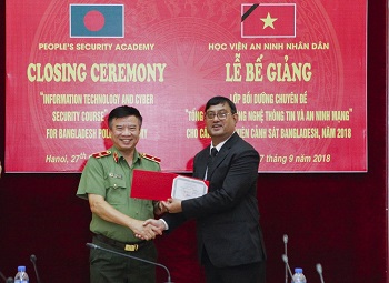Chiều 27/9/2018, Học viện An ninh nhân dân tổ chức Bế giảng lớp bồi dưỡng chuyên đề “Tổng quan về công nghệ thông tin và an ninh mạng” khóa 2 cho cán bộ Học viện Cảnh sát Bangladesh. Thiếu tướng, GS.TS Lê Minh Hùng - Phó Bí thư Đảng ủy, Phó Giám đốc Học viện dự và chủ trì buổi Lễ.