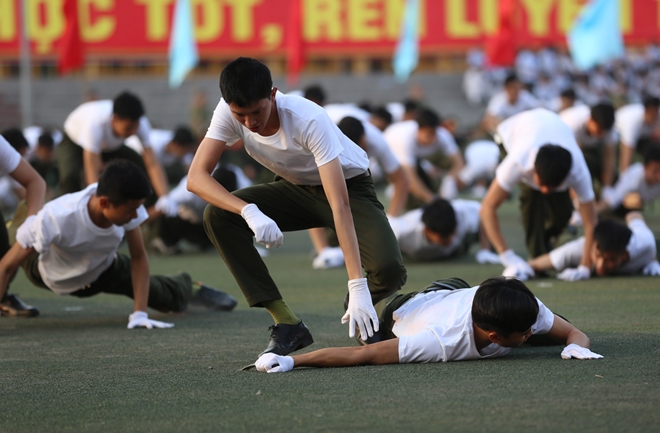 Vì là môi trường vũ trang nên những tiểu tiết đều được các thầy, cô giáo chú ý và chỉnh sửa ngay trong buổi sơ duyệt.