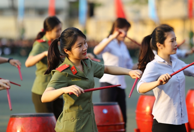 Nữ sinh Học viện ANND rạng ngời trong màn trống hội.