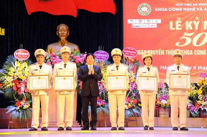 Tại buổi lễ, Ban tổ chức cũng đã công bố quyết định khen thưởng và trao Bằng khen của Thủ tướng Chính phủ tặng tập thể Khoa Công nghệ và An ninh thông tin; các quyết định khen thưởng và Bằng khen, Giấy khen của Bộ Giáo dục và Đào tạo, Bộ Thông tin và Truyền thông, Bộ Công an, Hội Toán học, Tin học, Ban Tuyên giáo – Thành ủy Hà Nội và Giám đốc Học viện ANND… tặng các tập thể, cá nhân Khoa CN&ANTT đã có những đóng góp vào sự phát triển của Khoa CN&ANTT trong 50 năm qua.
