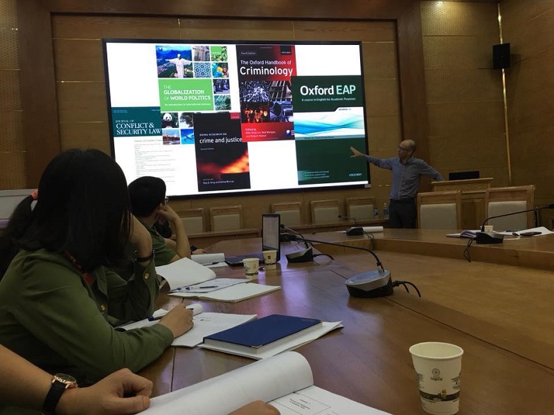 Thực hiện Kế hoạch công tác năm 2018 đã được Bộ trưởng Bộ Công an phê duyệt, từ ngày 8/10 đến 12/10/2018, Học viện ANND triển khai mở lớp bồi dưỡng chuyên đề “Tập huấn phương pháp giảng dạy các môn chuyên ngành bằng tiếng Anh và phương pháp viết giáo trình chuyên ngành bằng tiếng Anh” cho cán bộ, giáo viên của Học viện do ngài Jason Bednarz, Giám đốc học thuật của Đại học Waikato New Zealand giảng dạy.