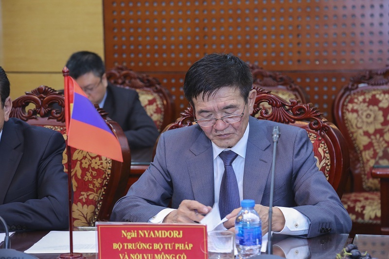 Ngài Ts.Nyamdorj - Bộ trưởng Bộ Tư pháp và Nội vụ Mông Cổ tại buổi làm việc