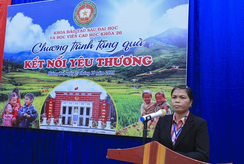 Ngày 27/10/2018, đồng chí Thiếu tướng, PGS.TS Nguyễn Hồng Hải - Phó Giám đốc Học viện dẫn đầu Đoàn công tác Học viện An ninh nhân dân (ANND) đến thăm và tặng quà cho các em học sinh Điểm trường xã Hoàng Trĩ, huyện Ba Bể, tỉnh Bắc Kạn.