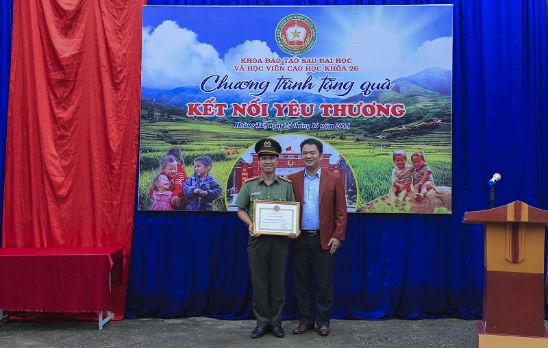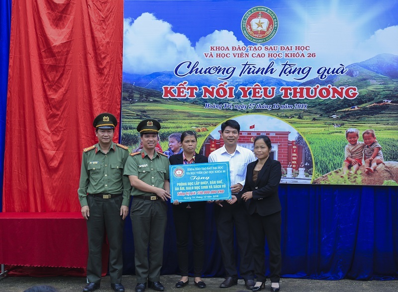 Phát huy tinh thần “Tương thân tương ái - lá lành đùm lá rách” và truyền thống tốt đẹp của Học viện ANND, Khoa Đào tạo sau đại học phối hợp với Công an tỉnh Bắc Kạn, Ủy ban nhân dân huyện Ba Bể và học viên khóa Cao học 26 tổ chức chương trình từ thiện “Kết nối yêu thương” nhằm kịp thời sẻ chia khó khăn với thầy, cô giáo và các em học sinh trường Tiểu học và Trung học cơ sở Hoàng Trĩ. Trong chương trình, đoàn công tác đã trao tặng nhà trường 01 phòng học lắp ghép diện tích 40m², 35 bộ bàn ghế và 70 áo ấm, 120 ba lô, 55 tập vở viết cho các em học sinh. Tổng số quà trị giá 150 triệu đồng.