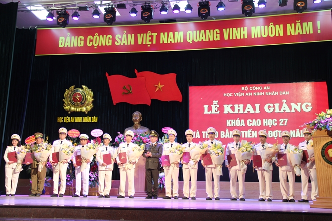 Nhân dịp này, Giám đốc Học viện ANND cũng đã ký quyết định công nhận trúng tuyển Khóa cao học 27 đợt I, quyết định công nhận học vị và trao bằng tiến sĩ cho các nghiên cứu sinh đã bảo vệ thành công luận án tiến sĩ năm 2018.