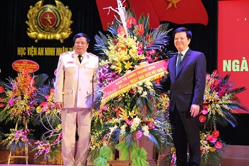 Đại diện Ban tổ chức Trung ương tặng hoa cho Học viện ANND nhân Ngày 20-11 |
