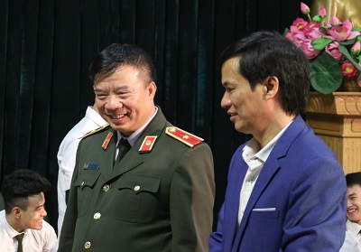 Thiếu tướng, GS.TS Lê Minh Hùng - Phó Bí thư Đảng ủy, Phó Giám đốc Học viện ANND (bên trái) và đồng chí PGS.TS Đồng Văn Hệ - Phó Giám đốc Bệnh viện Hữu nghị Việt - Đức (bên phải) tham dự chương trình