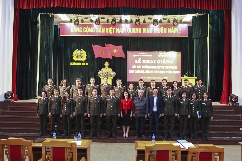 Thực hiện Thông tư số 12/2013/TT-BGDĐT ngày 12/4/2013 của Ban Đào tạo – Bộ Giáo dục Đào tạo về việc ban hành Chương trình Bồi dưỡng nghiệp vụ sư phạm cho giảng viên đại học, cao đẳng; các quyết định của Cục Đào tạo - Bộ Công an về việc tổ chức lớp bồi dưỡng nghiệp vụ sư phạm bậc đại học cho cán bộ, giảng viên Học viện An ninh nhân dân (ANND), sáng 27/11, tại Hà Nội, Học viện ANND phối hợp với Học viện Quản lý giáo dục (QLGD) tổ chức lễ Khai giảng lớp bồi dưỡng nghiệp vụ sư phạm cho đối tượng là cán bộ, giảng viên Học viện. Đồng chí Thiếu tướng, GS.TS Lê Minh Hùng - Phó Bí thư Đảng ủy, Phó Giám đốc Học viện chủ trì buổi Lễ.
