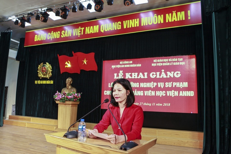 Phát biểu tại buổi Lễ, đồng chí Thiếu tướng, GS.TS Lê Minh Hùng cho biết: Đây là lần đầu tiên Học viện ANND phối hợp với Học viện QLGD mở lớp bồi dưỡng nghiệp vụ sư phạm cho đối tượng là giảng viên của Nhà trường. Có thể nói đây là sự quan tâm, tạo điều kiện của Cục Đào tạo - Bộ Công an và Học viện QLGD đã dành cho Học viện ANND. Chúng tôi hy vọng khóa học này là mở đầu về sự hợp tác giữa Học viện ANND và Học viện QLGD trong việc bồi dưỡng, nâng cao năng lực cho đội ngũ nhà giáo và cán bộ quản lý giáo dục.