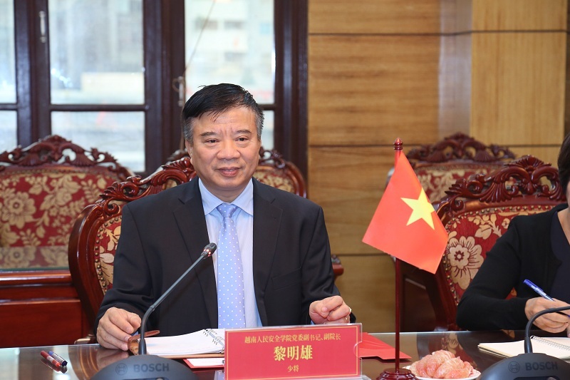 Phát biểu tại Buổi làm việc, Thiếu tướng, GS.TS Lê Minh Hùng - Phó Bí thư Đảng ủy, Phó Giám đốc Học viện vui mừng chào đón và cảm ơn Đoàn công tác Đảng ủy khối cơ quan Bộ Công an Trung Quốc đã đến thăm và làm việc tại Học viện ANND. Đồng chí Phó Bí thư Đảng ủy, Phó Giám đốc Học viện đã giới thiệu những thành tựu nổi bật của Học viện ANND trong hơn 72 năm xây dựng và phát triển; sự quan tâm và phần thưởng cao quý của Đảng, Nhà nước Việt Nam dành cho Học viện ANND; cơ cấu tổ chức của Đảng bộ Học viện, công tác giảng dạy lý luận chính trị, lý luận về xây dựng Đảng tại Học viện.
