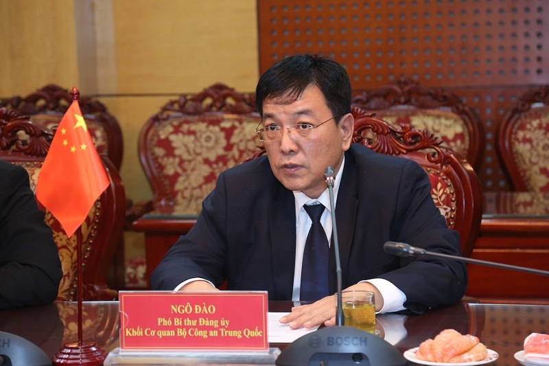 Đồng chí Ngô Đào - Phó Bí thư Đảng ủy khối cơ quan trực thuộc Bộ Công an Trung Quốc phát biểu tại buổi làm việc