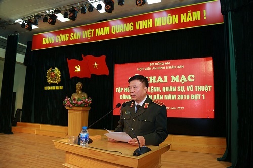 Hòa trong không khí tưng bừng, phấn khởi bước vào năm mới 2019 và chào mừng kỷ niệm 89 năm ngày thành lập Đảng Cộng sản Việt Nam (03/02/1930 - 03/02/2019), sáng 07/01, Học viện An ninh nhân dân long trọng tổ chức Lễ khai mạc lớp tập huấn điều lệnh, quân sự, võ thuật Công an nhân dân trong toàn thể cán bộ, giảng viên Học viện. Đồng chí Thiếu tướng, GS.TS Lê Minh Hùng - Phó Bí thư Đảng ủy, Phó Giám đốc Học viện, Trưởng ban Chỉ đạo tập huấn dự và chủ trì Lễ khai mạc.