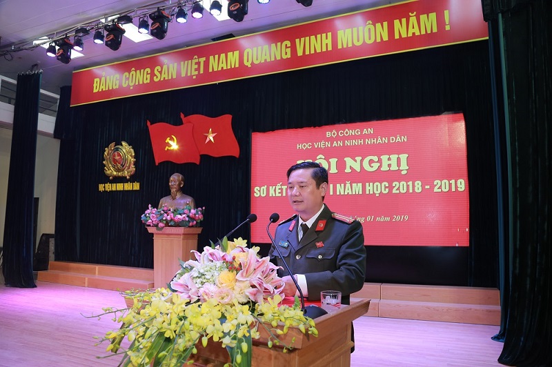 Trước khi tiến hành Hội nghị sơ kết học kỳ I năm học 2018-2019, đồng chí Thiếu tướng PGS.TS Lê Văn Thắng - Bí thư Đảng ủy, Giám đốc Học viện đã phổ biến, quán triệt những nội dung cơ bản của Hội nghị Công an toàn quốc lần thứ 74, đồng thời phân tích những hạn chế trong các mặt, lĩnh vực công tác, nguyên nhân chủ quan, khách quan và nhiệm vụ công tác của Bộ Công an trong năm 2018.