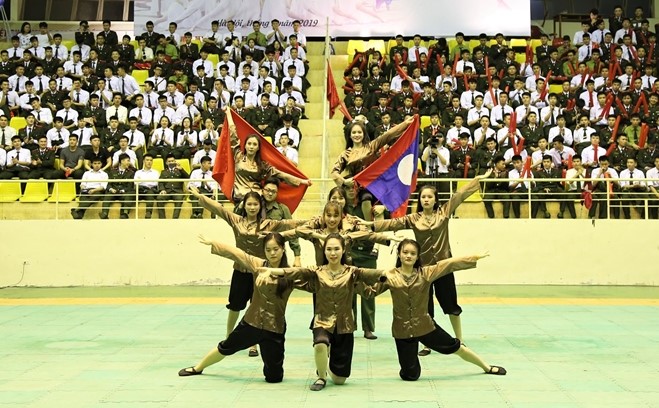 Với sự kết hợp của sinh viên hệ dân sự và các bạn du học sinh Lào, đội thi chuyên khoa 5 đã đem tới tiết mục dự thi thắm đượm tình đoàn kết hữu nghị Việt - Lào.