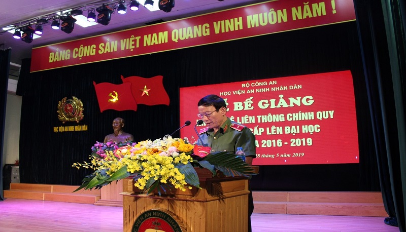 Thực hiện chương trình công tác năm học và Kế hoạch của Giám đốc Học viện, chiều ngày 28/5/2019, tại Hội trường lớn, Học viện An ninh nhân dân tổ chức Lễ Bế giảng khóa 8 hệ liên thông chính quy từ trung cấp lên đại học (niên khóa 2016 – 2018).