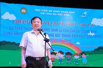 Tham dự chương trình, còn có đại diện lãnh đạo các đơn vị thuộc Học viện, cán bộ, giảng viên, công nhân viên các em thiếu nhi. Phát biểu tại chương trình, đồng chí Thiếu tướng, GS.TS Lê Minh Hùng - Phó Bí thư Đảng ủy, Phó Giám đốc Học viện gửi lời chúc mừng đến các em nhỏ nhân ngày Quốc tế thiếu nhi 1/6, biểu dương những thành tích của các em học sinh đã nỗ lực, cố gắng đạt được trong năm học 2018 - 2019; đồng chí Phó Bí thư Đảng ủy, Phó Giám đốc Học viện mong rằng các em luôn chăm ngoan, học giỏi, nghe lời ông bà, cha mẹ và cố gắng hơn nữa để đạt những thành tích cao trong học tập.