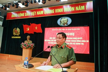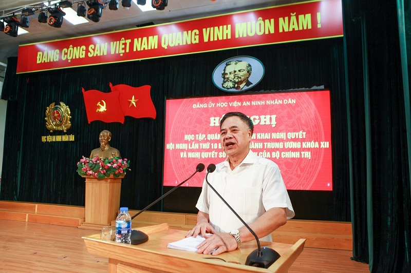 Thực hiện 1234-KH/ĐU ngày 23/7/2019 của Đảng ủy Học viện An ninh nhân dân (ANND) “Về việc tổ chức học tập, quán triệt, tuyên truyền và triển khai thực hiện các nội dung Hội nghị lần thứ mười, Ban Chấp hành Trung ương Đảng khóa XII và Nghị quyết số 35-NQ/TW ngày 22/10/2018 của Bộ Chính trị “về tăng cường bảo vệ nền tảng tư tưởng của Đảng, đấu tranh, phản bác các quan điểm sai trái, thù địch trong tình hình mới””, ngày 31/7/2019, tại Hội trường Lớn, Học viện ANND tổ chức Hội nghị học tập, quán triệt các nội dung của Hội nghị Trung ương 10 khóa XII và Nghị quyết số 35 của Bộ Chính trị trong Đảng bộ Học viện.