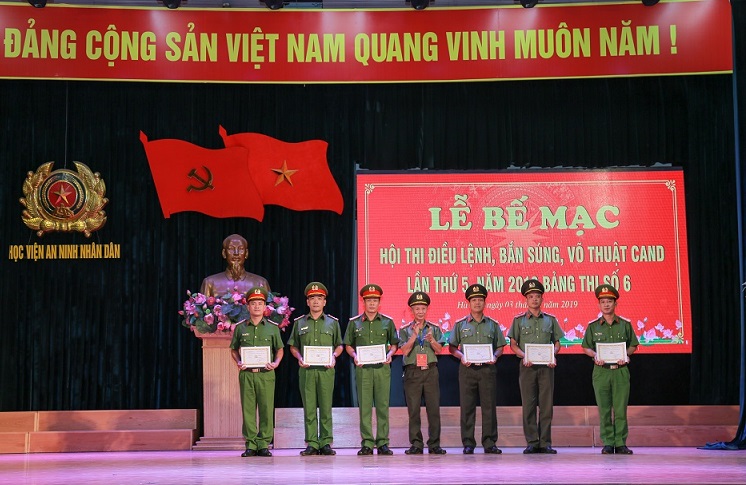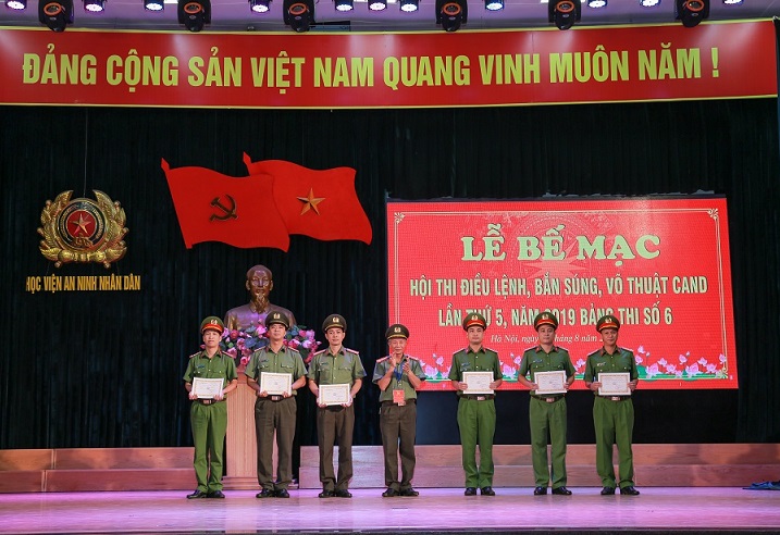 Chiều 3/8/2019, tại Học viện An ninh nhân dân (ANND) diễn ra lễ bế mạc Hội thi điều lệnh, bắn súng, võ thuật năm 2019 bảng thi số 06 gồm 08 đội tuyển đại diện cho các Học viện, trường CAND khu vực phía Bắc.