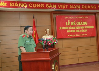 Sáng 02/8/2019, tại Hà Nội, Học viện An ninh nhân dân (ANND) tổ chức Lễ bế giảng Khóa 10 lớp Bồi dưỡng chức danh Trưởng phòng và tương đương khối An ninh. Thiếu tướng, PGS.TS Lê Văn Thắng - Bí Thư Đảng ủy, Giám đốc Học viện tới dự và chủ trì buổi Lễ.