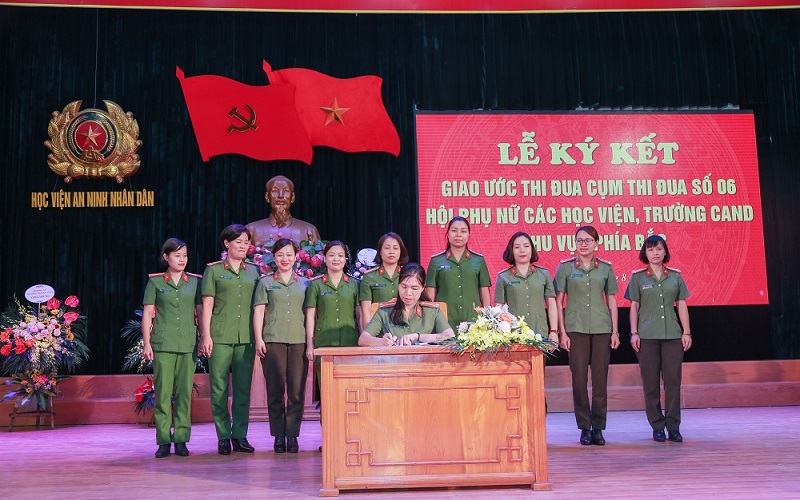 Tham dự lễ ký kết giao ước thi đua, có đồng chí Nguyễn Thị Quế - Phó Chủ tịch Hội Phụ nữ Bộ Công an; đại diện lãnh đạo các Học viện, trường CAND khu vực phía Bắc; đại diện lãnh đạo các đơn vị thuộc Học viện, Ban Chấp hành Hội Phụ nữ các Học viện, trường CAND khu vực phía Bắc cùng gần 200 hội viên.
