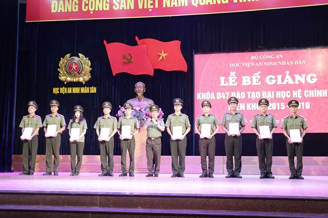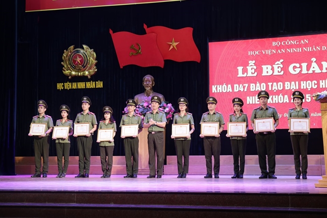 Cũng tại buổi Lễ, Ban Giám đốc Học viện ANND, lãnh đạo Cục Đào tạo, Cục Tổ chức cán bộ đã trao bằng tốt nghiệp và quyết định phong cấp bậc hàm cho các học viên Khóa D47; tặng Giấy khen của Cục Đào tạo, Giấy khen của Học viện cho các học viên tiêu biểu, xuất sắc.