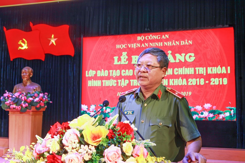 Phát biểu tại buổi Lễ, Thiếu tướng Nguyễn Văn Ly - Phó Cục trưởng Cục Đào tạo, Bộ Công an đã trân trọng cảm ơn sự quan tâm, chỉ đạo giúp đỡ, tạo điều kiện của Ban Tổ chức Trung ương, Học viện Chính trị Quốc gia Hồ Chí Minh đối với Bộ Công an nói chung, Học viện ANND nói riêng trong suốt quá trình tổ chức khóa đào tạo Cao cấp lý luận chính trị khóa I-niên khóa 2018-2019 từ quá trình triển khai xây dựng chương trình, kế hoạch đào tạo và tổ chức giảng dạy, quản lý lớp đào tạo. Lãnh đạo Cục Đào tạo cũng bày tỏ mong muốn sẽ tiếp tục nhận được sự ủng hộ, tạo điều kiện giúp đỡ, đồng hành của Ban Tổ chức Trung ương, Học viện Chính trị Quốc gia Hồ Chí Minh trong các khóa đào tạo tiếp theo.
