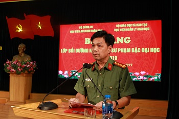 Sau gần 1 tháng học tập, dưới sự hướng dẫn của đội ngũ giảng viên có trình độ chuyên môn cao đến từ Học viện Quản lý giáo dục và Đại học Quốc gia, khoá học đã bổ sung những kiến thức mới và tiếp cận những phương pháp giảng dạy hiện đại như: những tình huống về sư phạm giảng dạy, tâm lý giáo dục đại học, ứng dụng công nghệ thông tin trong dạy học đại học... Quá trình học tập, các học viên đã nêu cao tinh thần trách nhiệm, gương mẫu trong học tập, nghiên cứu, chấp hành tốt điều lệnh CAND và các quy định của lớp học. Kết quả, 100% học viên tốt nghiệp đạt loại Khá trở lên.