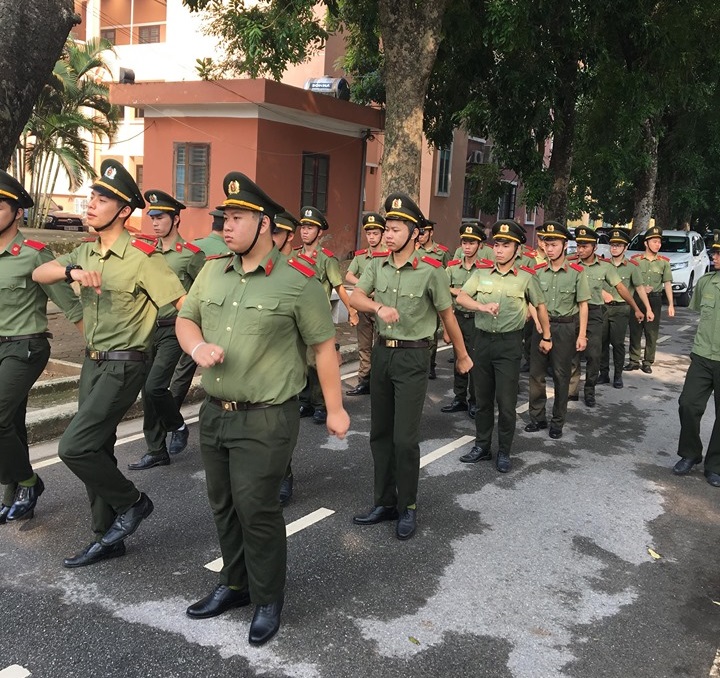 Học viên tham gia tập huấn Điều lệnh CAND đầu khóa học