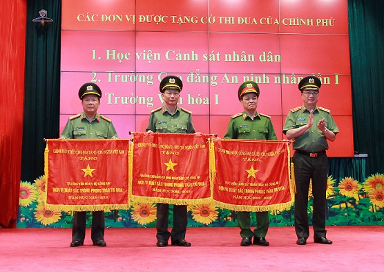 Cũng tại Hội nghị, thừa ủy quyền của Thủ tướng Chính phủ, Thứ trưởng Nguyễn Văn Thành đã tặng Cờ thi đua của Chính phủ cho 03 đơn vị xuất sắc trong các Học viện, trường CAND; tặng Cờ thi đua, Bằng khen của Bộ Công an cho các Học viện, trường CAND đã có thành tích tiêu biểu trong năm học 2018 - 2019.