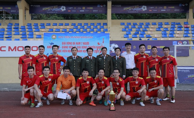 Tại nội dung bóng đá nam 7 người khối cán bộ, giảng viên, đội liên quân ANTT - Tham mưu chỉ huy - NCKH - Hợp tác quốc tế đã xuất sắc giành cúp vô địch; ngôi vị á quân thuộc về đội tuyển Phòng QLHV; đồng giải Ba là 2 đội liên quân Hậu cần - Tài chính - Y tế và Sau Đại học - Trung tâm LT&TV.