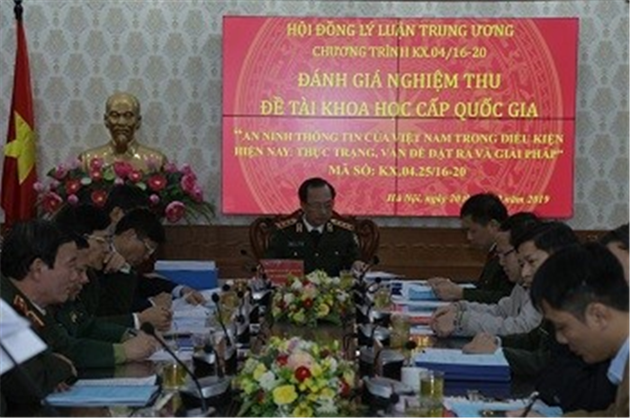 Ngày 20/12/2019, tại Học viện An ninh nhân dân, Hội đồng Khoa học và công nghệ cấp quốc gia do Thượng tướng PGS, TS Nguyễn Văn Thành – Thứ trưởng Bộ Công an làm Chủ tịch đã tổ chức đánh giá nghiệm thu đề tài “An ninh thông tin của Việt Nam trong điều kiện hiện nay: Thực trạng, vấn đề đặt ra và giải pháp”. Đây là đề tài khoa học cấp quốc gia thuộc Chương trình “Nghiên cứu khoa học lý luận chính trị giai đoạn 2016-2020” do Học viện An ninh nhân dân là cơ quan chủ trì và Thiếu tướng, PGS.TS Lê Văn Thắng - Giám đốc Học viện làm Chủ nhiệm.