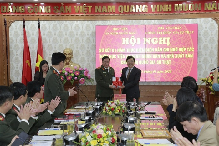Ngày 03/01/2020, Học viện An ninh nhân dân phối hợp với Nhà xuất bản Chính trị quốc gia Sự thật tổ chức Hội nghị sơ kết 01 năm thực hiện Biên bản ghi nhớ hợp tác giữa hai đơn vị. Tham dự Hội nghị, về phía Nhà xuất bản Chính trị quốc gia Sự thật có đồng chí Phạm Chí Thành - Quyền Giám đốc, Tổng Biên tập Nhà xuất bản; đồng chí Vũ Trọng Lâm - Phó Giám đốc, Phó Tổng Biên tập và các đồng chí lãnh đạo các Vụ, Phòng, Ban chức năng của Nhà xuất bản. Về phía Học viện An ninh nhân dân có Thiếu tướng, PGS.TS Lê Văn Thắng - Giám đốc Học viện An ninh nhân dân và các đồng chí lãnh đạo các Khoa, Phòng, Bộ môn, Trung tâm của Học viện.
